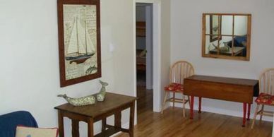 Red Clay Cottage is the closest cottage to the beach and a perfect spot for an easy, relaxed getaway. Located at 5 Ferry View Lane, Red Clay offers comfortable sleeping for up to 6 guests with one bedroom featuring a queen bed and a second bedroom with a double bed and two single beds (not bunk beds).